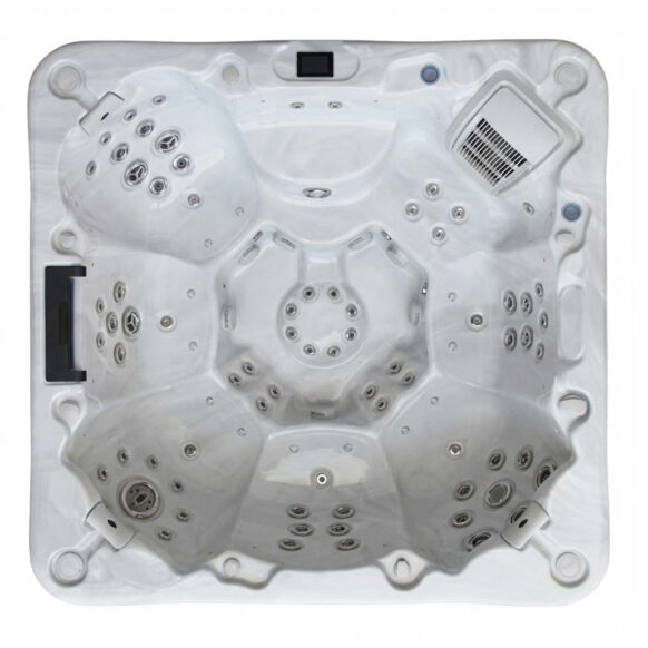Het cabinet van onze spa’s is dubbellaags geïsoleerd. Aan de buitenkant bestaat de isolatie uit een dikke laag ThermaShield met daarachter een isolerende vulling die infrarood warmte weerkaatst. Daarnaast heeft de jacuzzi een ABS bodem met isalatie welke de kou overdracht uit de grond tegen gaat. De kuip is geïsoleerd met high density isolatie foam, tot wel 5 cm dik. Op deze manier wordt de warmte optimaal benut en behouden.