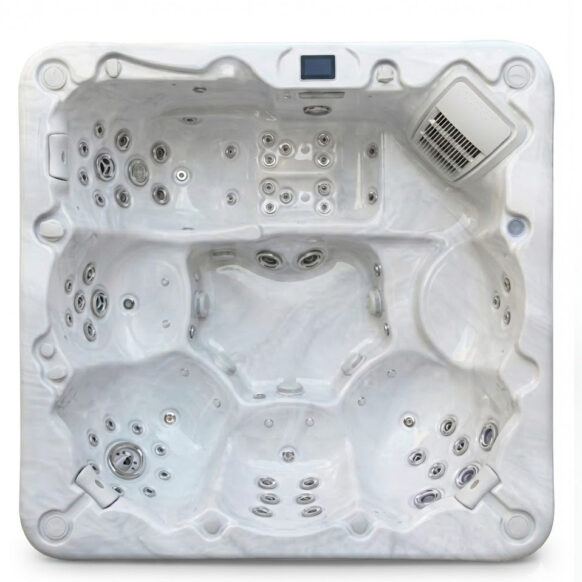 Het cabinet van onze spa’s is dubbellaags geïsoleerd. Aan de buitenkant bestaat de isolatie uit een dikke laag ThermaShield met daarachter een isolerende vulling die infrarood warmte weerkaatst. Daarnaast heeft de jacuzzi een ABS bodem met isalatie welke de kou overdracht uit de grond tegen gaat. De kuip is geïsoleerd met high density isolatie foam, tot wel 5 cm dik. Op deze manier wordt de warmte optimaal benut en behouden.